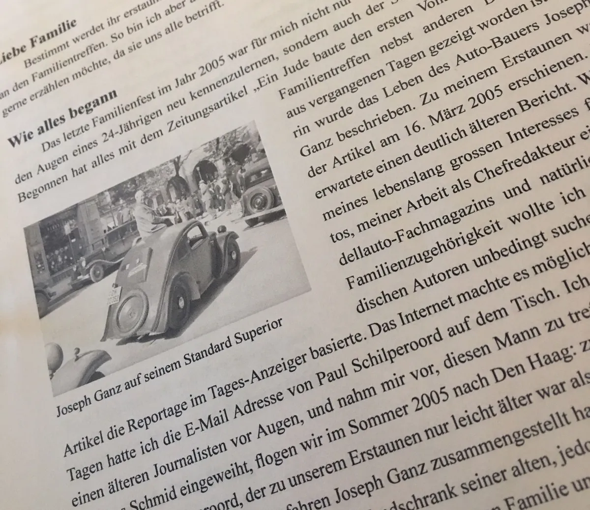 Since then a great friendship started between Paul and I. While I tried to help him with his research wherever I could, I also started to learn much more about my family. I wrote to many family members and also met most of my father’s cousins to find out what they still remembered about Josef “Seppl” Ganz. It was a very nice way to learn more about my past, too! I met with the editor in chief of Automobile Revue, a renowned Swiss car magazine. Paul and I met all over the world again, visiting archives together or companies like Rapid (manufacturer of the “Swiss Volkswagen”). It was a true and unique adventure! But it started to really get crazy when I found a family member who thought she was all alone in Switzerland… read more about this in my next post!