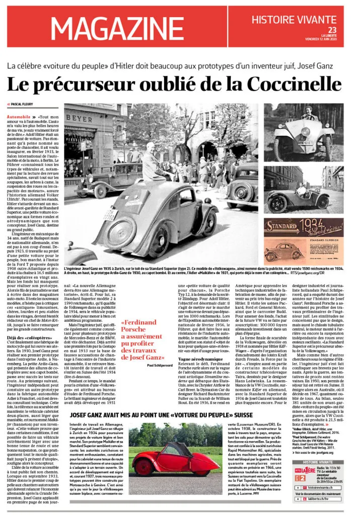 Sunday, June 14 at 21:00 on RTS2 the film “Ganz: How I lost my Beetle” will be shown in the short version of 55 minutes in French. On Friday, June 12, the film has already been discussed in the format “Histoire vivante” on RTS La1ère, with the sociologist Pierre Lannoy of the Université libre de Bruxelles.