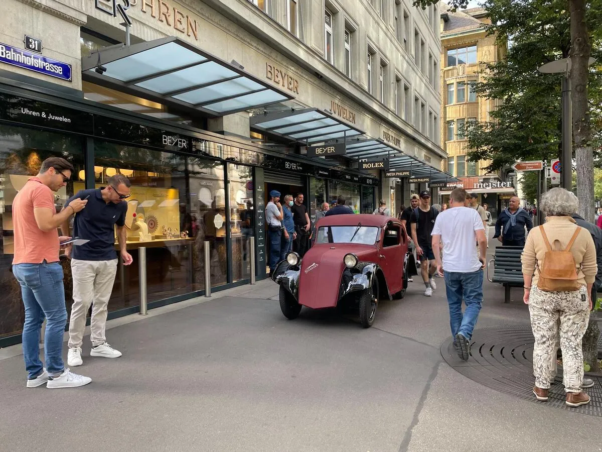 After this trip, the vehicle was on display for a fortnight in the beautiful shop of Beyer Chronometrie. Read also the report from Beyer Chronometrie.